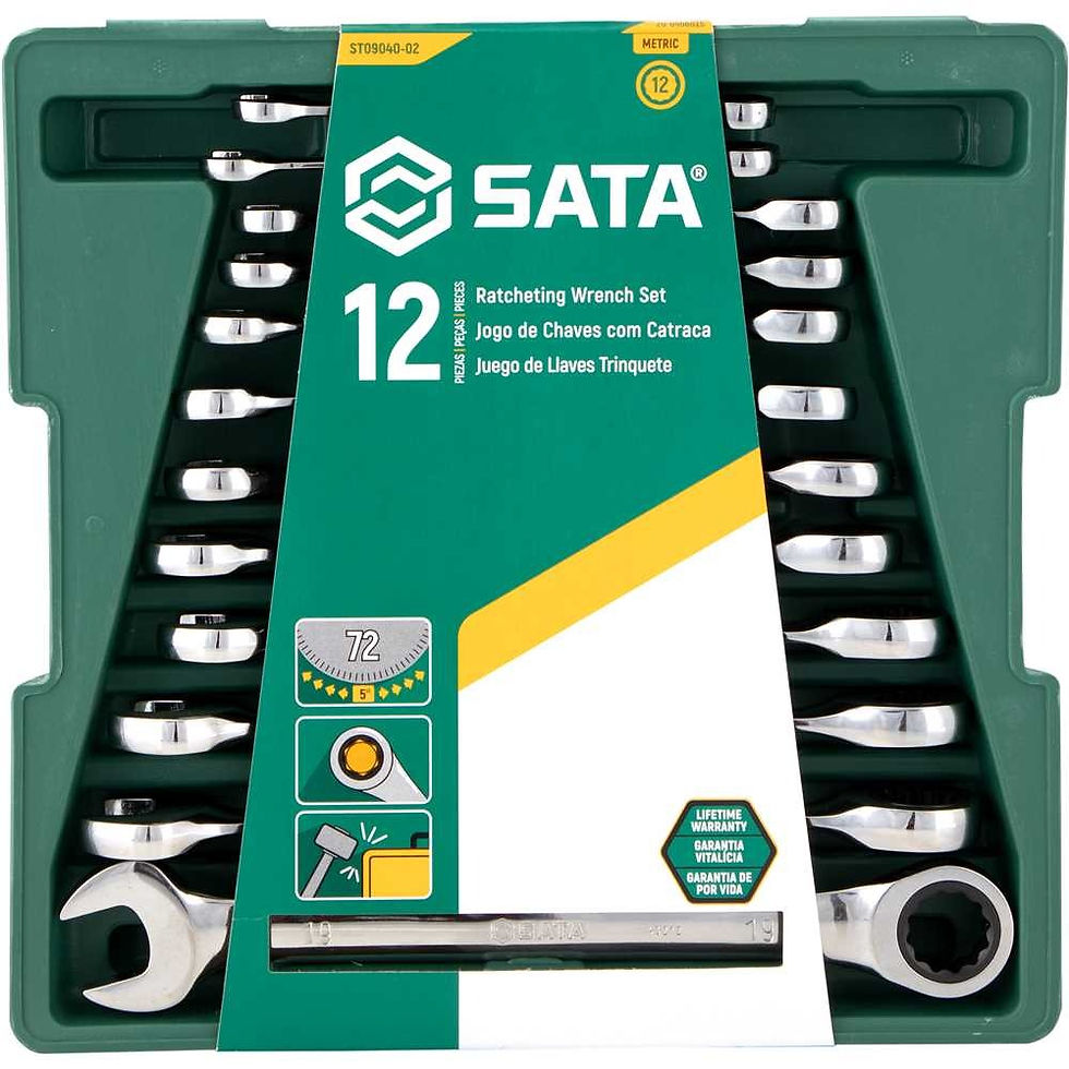 JOGO DE CHAVES COMBINADAS 8 MM A 19 MM COM CATRACA 12 PEÇAS ST09040-02 SATA