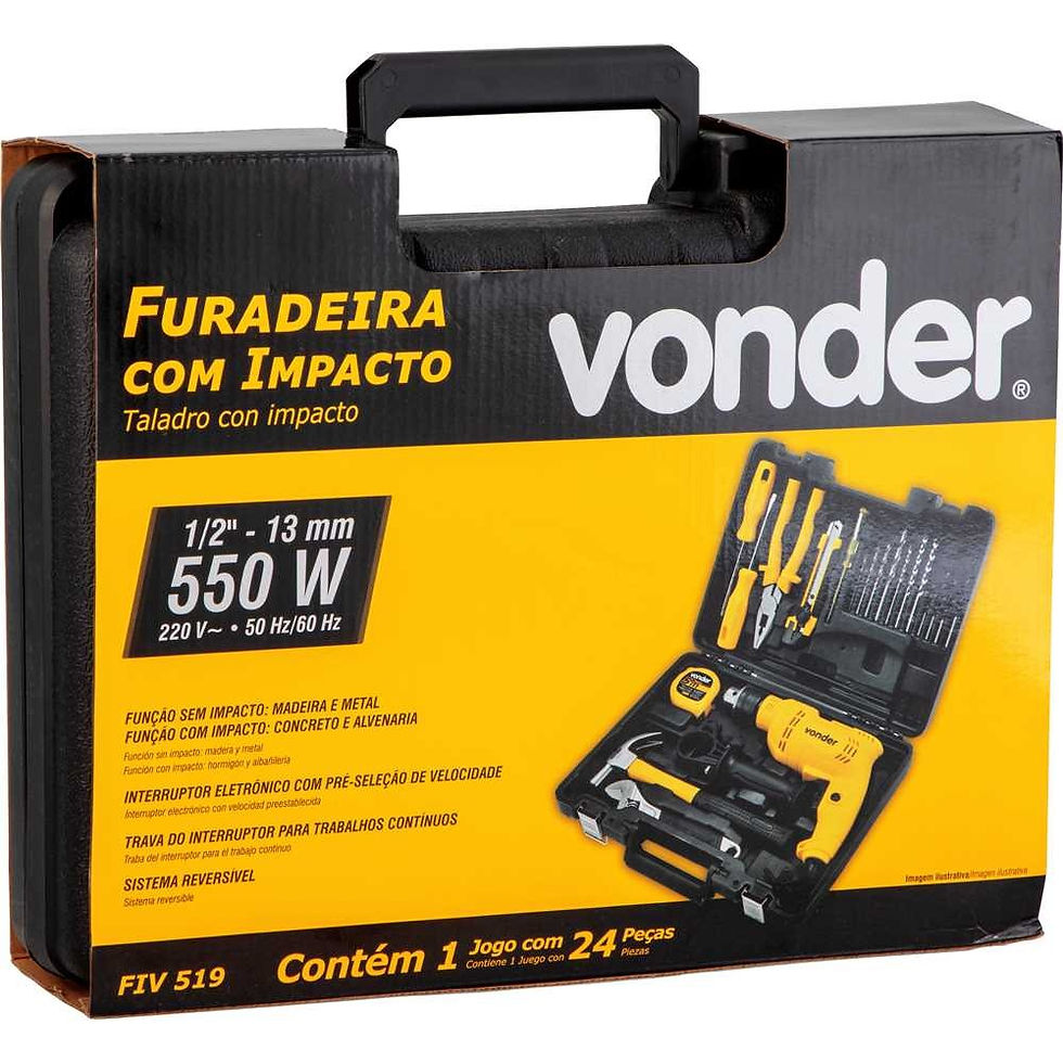 FURADEIRA DE IMPACTO 1/2" 550 W 127 V~ COM JOGO DE 19 ACESSÓRIOS FIV 519 VONDER
