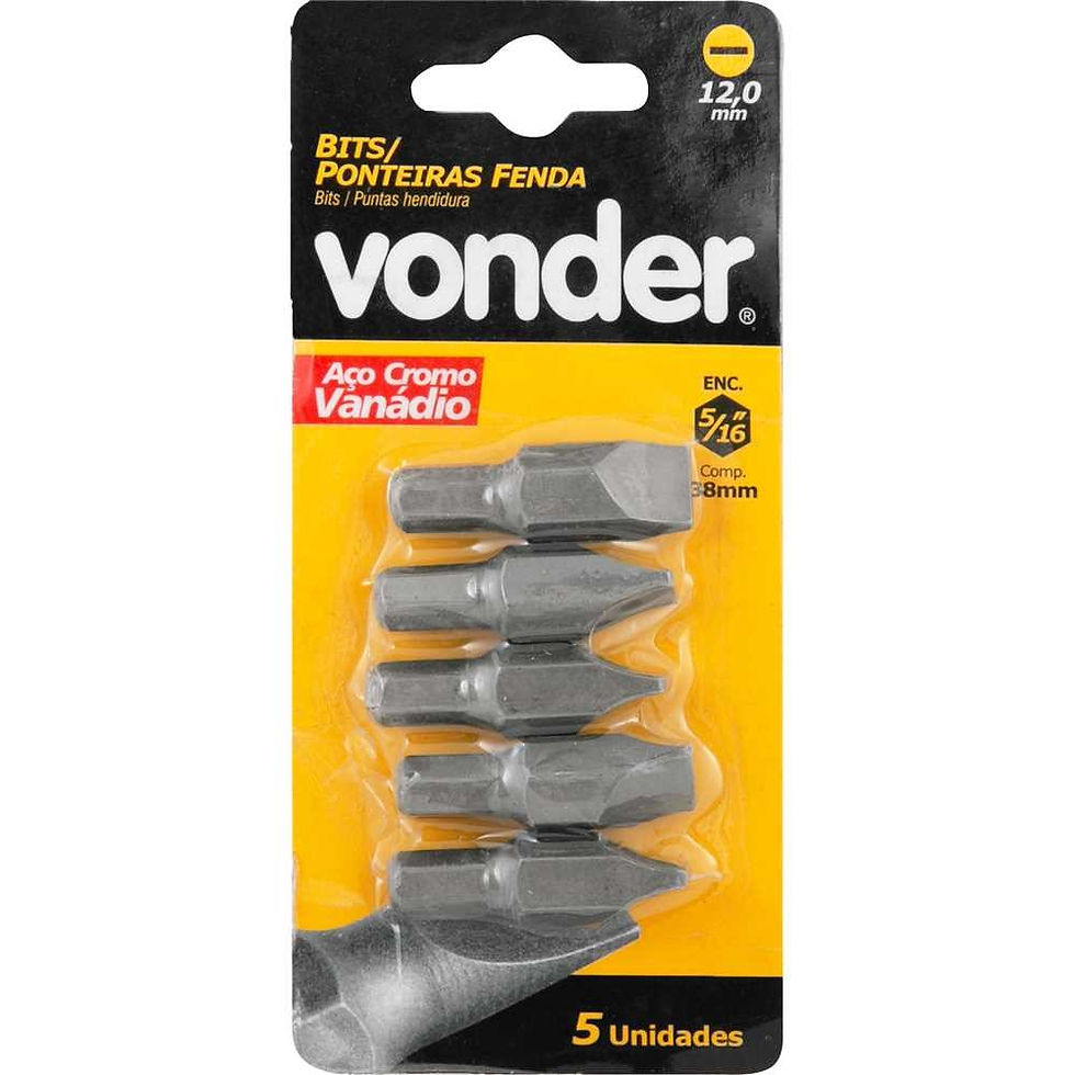 JOGO DE BITS/PONTEIRAS FENDA ENCAIXE 5/16" 12 MM X 38 MM CARTELA COM 5 PEÇAS